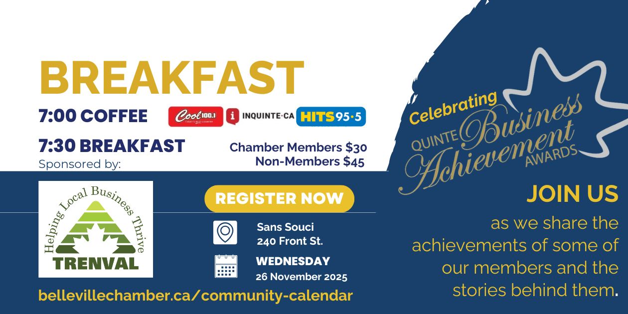 We are proud to be celebrating 160 years of service to the business community of Belleville as 'The Voice of Business'. Created in 1864 and originally as a Board of Trade for Hastings County, businesses were required to participate. In 1920 it was converted to a Chamber of Commerce and represented one of the most successful Chambers in Eastern Ontario at that time. As the region developed, additional Chambers were formed in Quinte West, Prince Edward County, Madoc and Tweed. Although we are separate Chambers representing different cities and towns, we take a regional approach to our endeavours. After all, business knows no boundaries.